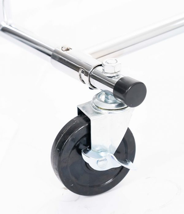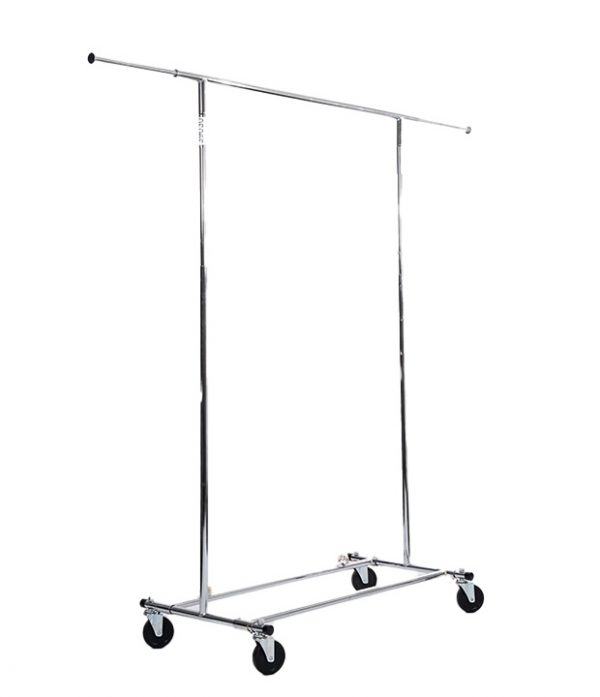 This versatile single-rail hanging rack is ideal for a back-of-house retail stockroom with its strong frame and heavy-duty lockable wheels that maximise ease of mobility. The rack is adjustable in both height and length to cater to your stock-size requirements and is very simple to set-up and pack down.
